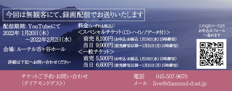 前売 税込8,100円(お申込・お振込 1月19日(水)15時締切)